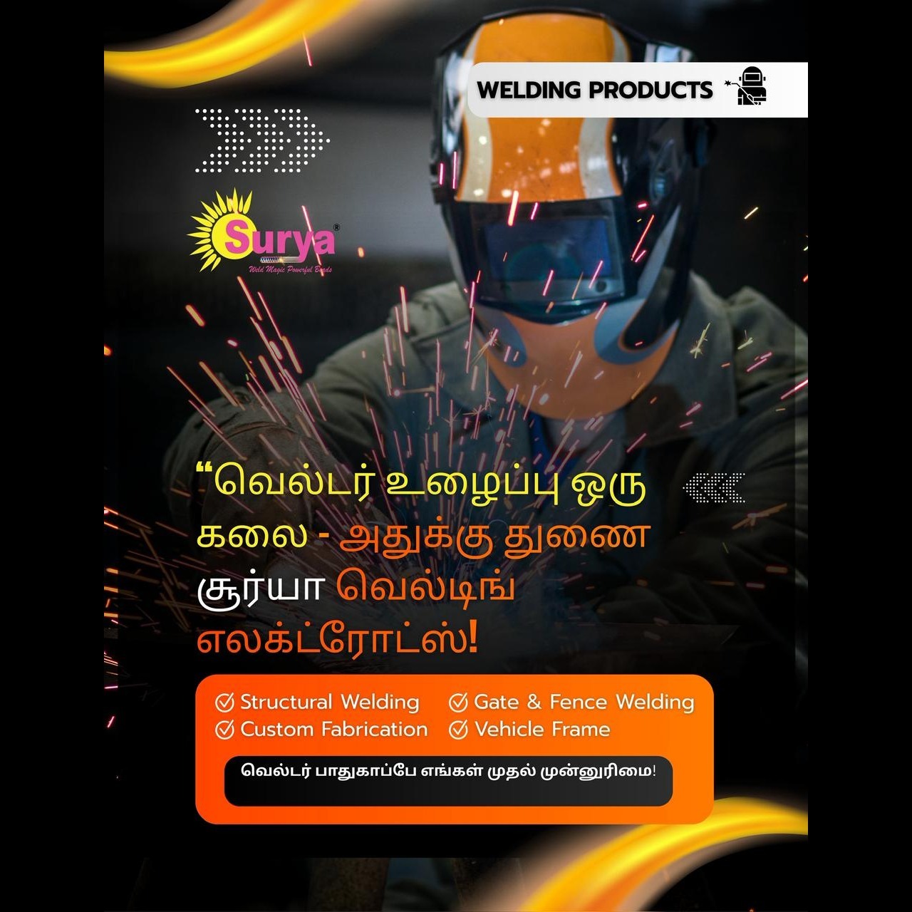 DC+ (Electrode Positive) gives deeper penetration compared to DC.Top Welding Electrode Manufacturers in chennai, tamilnadu India Welding Rod Dealers in chennai, tamilnadu India Welding Electrode Manufacturers in chennai, tamilnadu India Address Welding Electrode Manufacturers in chennai, tamilnadu India Contact Number Best Welding Electrode Manufacturers in chennai, tamilnadu India Steel Welding Electrode Manufacturers in chennai, tamilnadu India Best Welding Rod Dealers in chennai, tamilnadu India Industrial Welding Electrode Manufacturers in chennai, tamilnadu India What is a Welding Electrode? A welding electrode is a metal wire or rod used in arc welding to create a strong joint between two metal pieces. When electric current passes through the electrode, it produces an arc that melts both the electrode and the base metal, forming a solid weld after cooling. Most electrodes are coated with flux, which protects the weld from air contamination and improves weld quality. Applications of Welding Electrodes Welding electrodes are widely used across many industries: Construction Works – Buildings, bridges, gates, grills Fabrication Shops – Frames, racks, sheds, furniture Automobile Industry – Body repair, chassis welding Industrial Plants – Machinery, pipelines, structures Agricultural Equipment – Ploughs, trailers, tools Shipbuilding & Railways – Heavy-duty structural welding Home & Maintenance Works – Small repairs, metal joining Benefits of Welding Electrodes 1. Strong & Durable Welds Produces high-strength joints capable of handling heavy loads and vibrations. 2. Easy to Use Suitable for beginners and experienced welders; stable arc and smooth operation. 3. Works in All Positions Many electrodes can be used in flat, vertical, horizontal, and overhead positions. 4. Good Weld Finish Flux coating helps reduce spatter and gives a clean, smooth bead. 5. Versatile Metal Compatibility Available for mild steel, stainless steel, cast iron, and alloy steels. 6. Cost-Effective Low equipment cost and affordable electrodes make it economical for small and large jobs. 7. Reliable in Outdoor Conditions Can be used in open areas where wind or environment affects other welding methods. Why Flux-Coated Electrodes are Important Protects molten weld from oxygen and nitrogen Improves penetration and bead appearance Helps remove impurities through slag formation Ideal Choice For Anyone looking for reliable, strong, and economical metal joining, from small workshops to heavy industries.